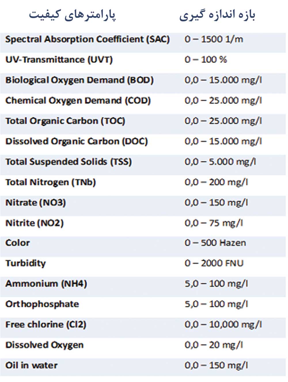 این دستگاه بصورت لحظه به لحظه پارامترهای کیفی آب را بدون نیاز به معرف اندازه گیری می کند.